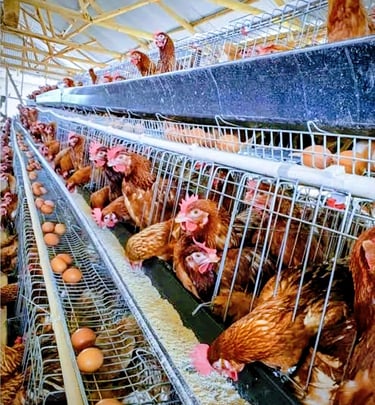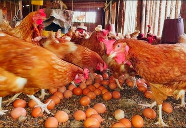 Eggs collected daily from free-range chickens, fresh and wholesome.